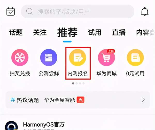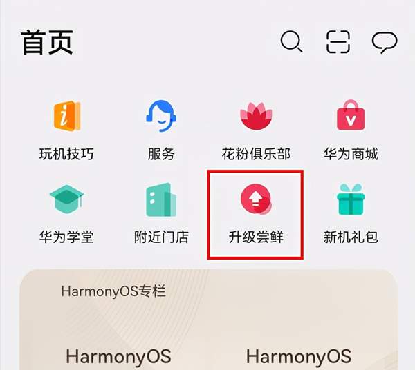 2.点击顶部的HarmonyOS 2升级尝鲜。