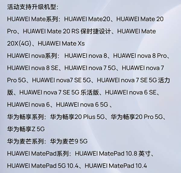 nova 8、nova 8 Pro、nova 8 SE、nova 7 5G、nova 7 Pro 5G、nova 7 SE 5G、nova 7 SE 5G活力版、nova 7 SE 5G乐活版、nova 6、nova 6 5G、nova 6 SE