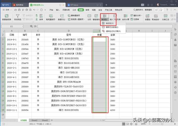 打开文件所在位置,选择要设置内容限制的单元格区域,本例中选择E3:E18;单击(数据)选项卡(有效性)组中的(有效性)按钮