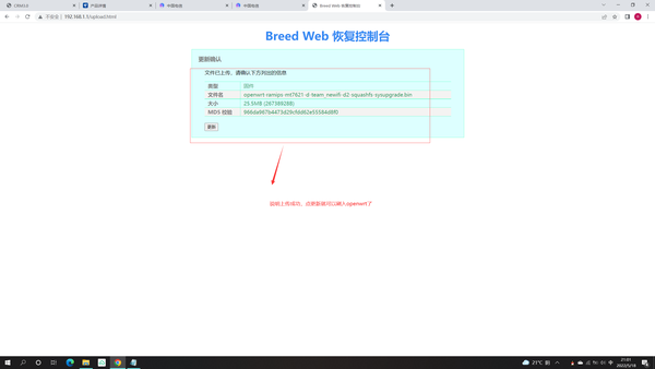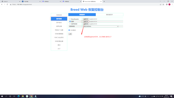第四步:我们通过breed刷入openwrt如图