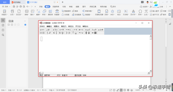 第三步,接着,Word文档中就会弹出【公式编辑器】的对话框了。