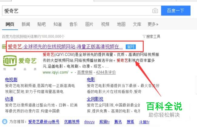 在搜索引擎里输入爱奇艺搜索词,找到爱奇艺的网站官网,如图所示: