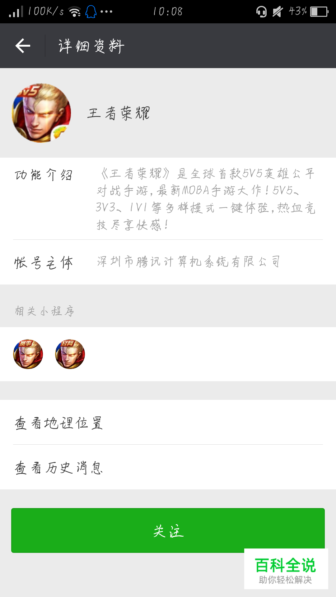 首先在微信中关注“王者荣耀”公众号