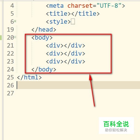 这里我就以div标签为例进行说明,首先,我们在网页中书写三个div标签。