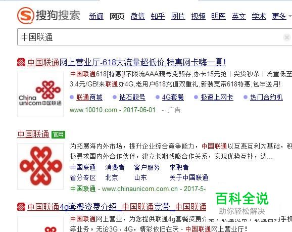 点击排名的第一个,进入中国联通的网上营业厅