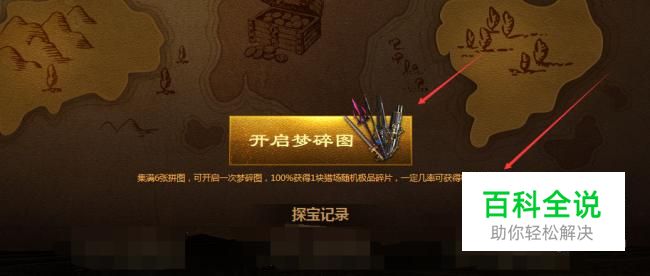 进行完上述操作,重新点击“一键探宝”出现所获碎片,如下图所示