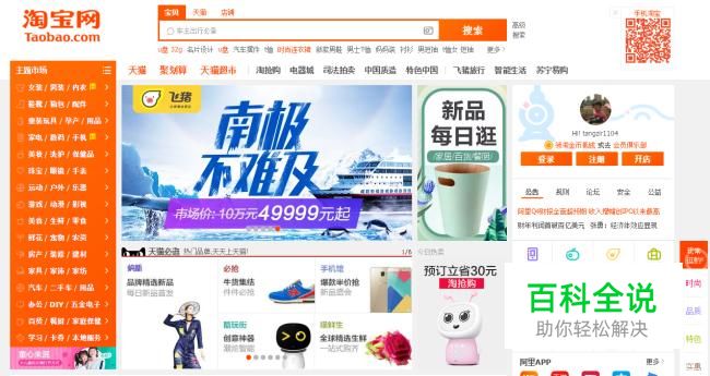 打开浏览器输入: www.taobao.com,进入淘宝网首页