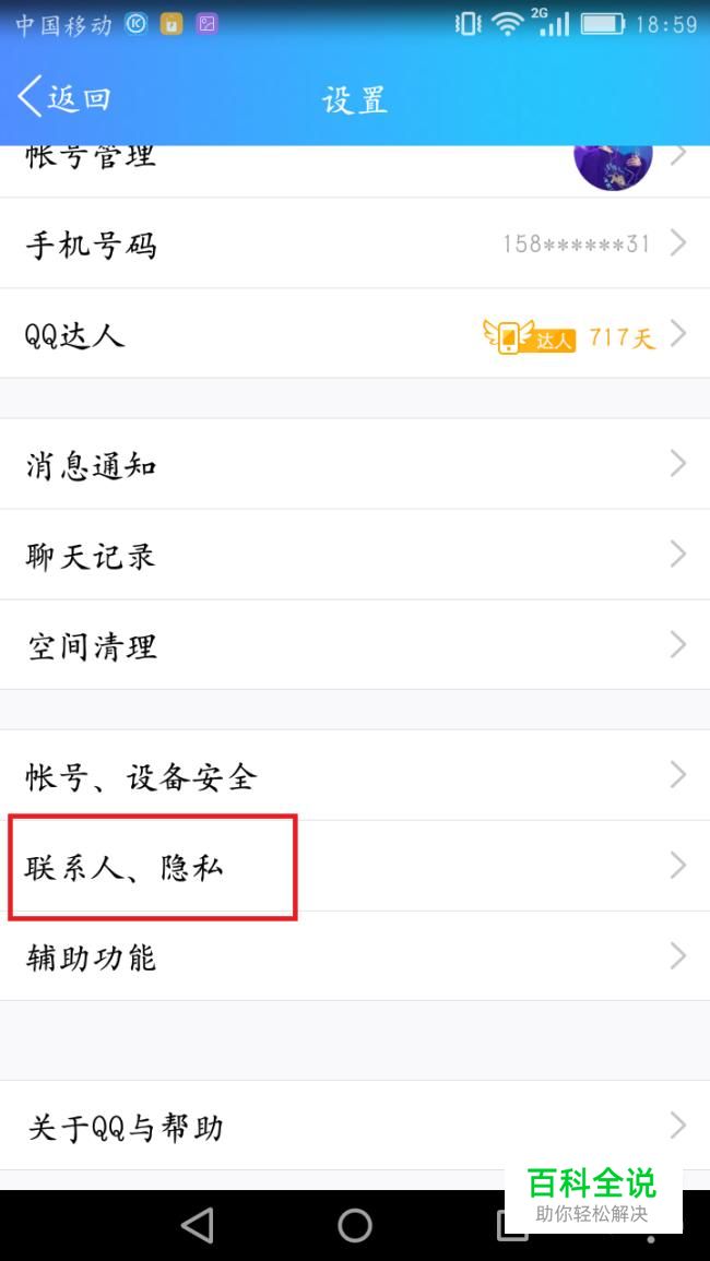 在设置界面,找到“联系人.隐私”然后点进去。
