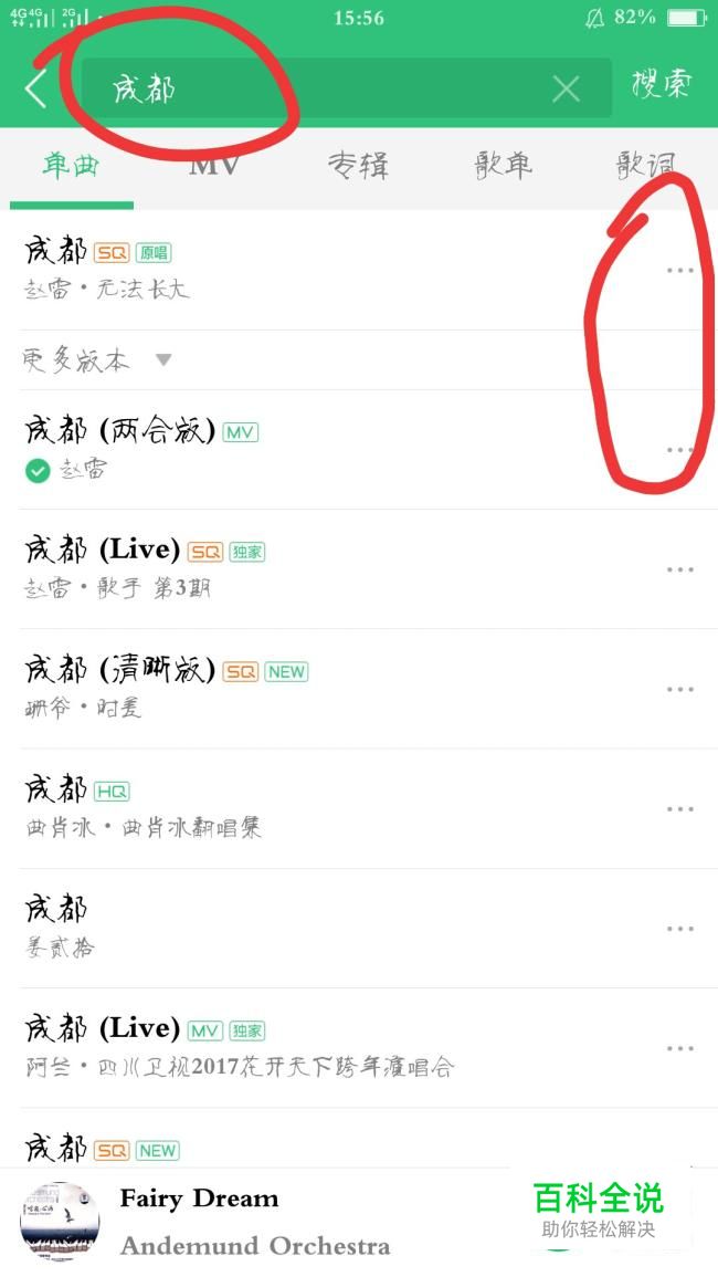 搜索要下载的歌曲,点击歌曲后面的三个点标志,进行后续的操作。