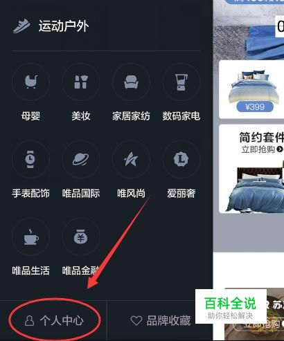 首先打开自己手机上的唯品会,将页面右滑就可以看到如下界面了,点击其中的“个人中心”。