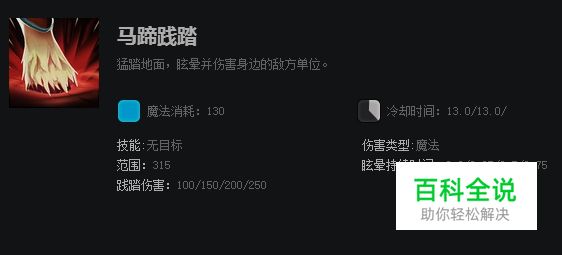马蹄践踏是人马的一个控制技能,能对人马为圆心周围的敌方单位造成眩晕和伤害。