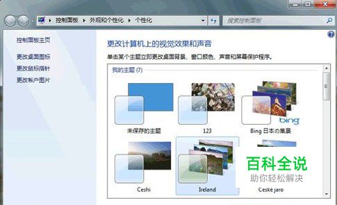 “爱尔兰”主题为例。安装应用这个主题后,在桌面空白处右击鼠标,选择“个性化”。