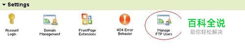登陆帐户进入Control Panel控制台,点击 Settings 目录下的 Manage FTP Users 开始设置FTP帐户