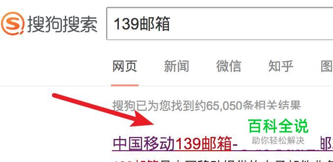 先打开搜狗搜索,输入‘139邮箱’来搜索。点击打开第一个结果。