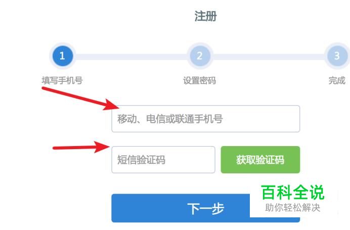 在这里输入自己的手机号,然后输入手机收到的验证码,点击下一步。