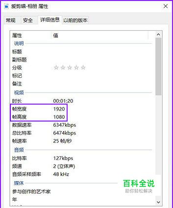 怎么才能知道原视频的分辨率呢?可以查的呀~包括分辨率在内,视频文件的很多信息都是可以查的。以Win10为例: 1、在文件夹中找到视频文件,右键文件,点击“属性”,就会出现视频的“属性弹出框”。 2、切换到“详细信息”选项卡,“帧宽度”和“帧高度”后面的数值就是分辨率的两个数值。 (Win7的操作也是大同小异)