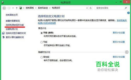 依次选择控制面板》系统和安全》电源选项,打开“选择电源按钮的功能”;