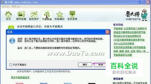 点击“开启自动节能降温”,鲁大师自动为您调整当前电脑设备耗电量,并且控制电脑各主要部件的温度,在尽可能不影响性能的前提下,使部件温度控制在适当的范围以内。