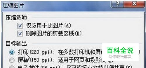 打开“压缩图片”对话框,选中“仅应用于所选图片”复选框,并根据需要更改分辨率(例如选中“Web/屏幕”单选按钮)。设置完毕单击“确定”按钮即可对Word2010文档中的选中图片进行压缩,如图所示