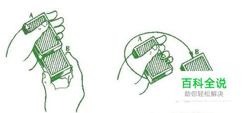 1.左手手掌向上握住一副牌。 食指在牌叠的一端,其他三个指头握住牌叠的右侧(如图)。