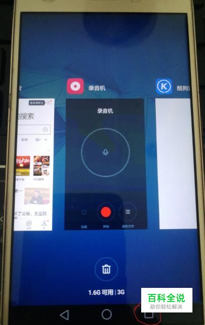 同样我们点击右下角或者左下角正方形的菜单键,在屏幕下面会出现个垃圾筐图标,我们点击这个图标就清理了所有在运行的程序。