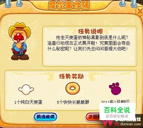 到这里我们本次的任务也就完成了,完成任务可以获得一个纯白天使蛋、5个快快长脆摧酥。