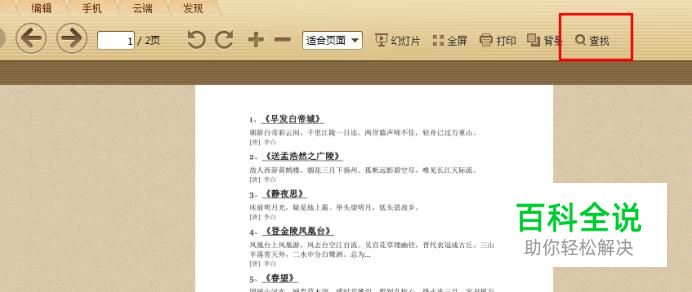 我们的任务是找到“杜甫”两个字。点击菜单栏中的“查找”。
