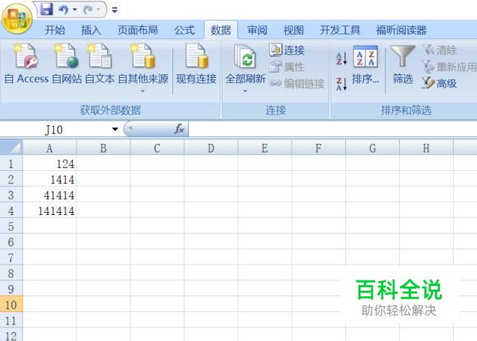 然后我们在表格中输入一组数据,如图所示;