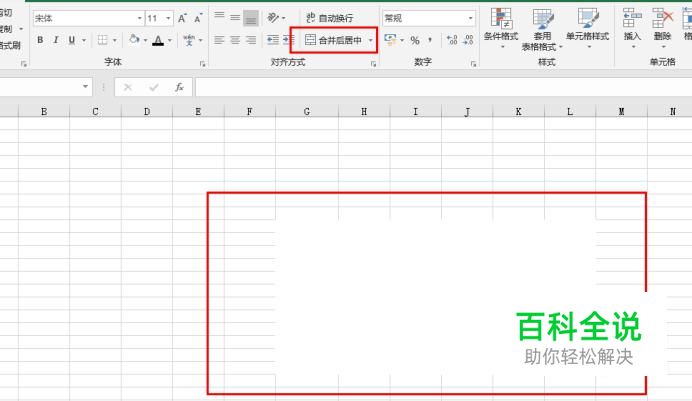 新建一个Excel空表格,选中任意几个单元格进行合并居中。