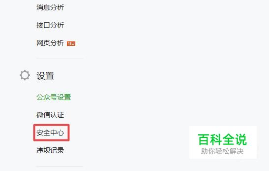 首先,我们点击打开我们电脑上面的浏览器,然后登陆微信公众号,进入微信公众号后,我们点击安全中心;