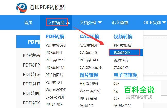 进入在线操作后,在菜单栏文档转换下点击界面中的视频转GIF选项。