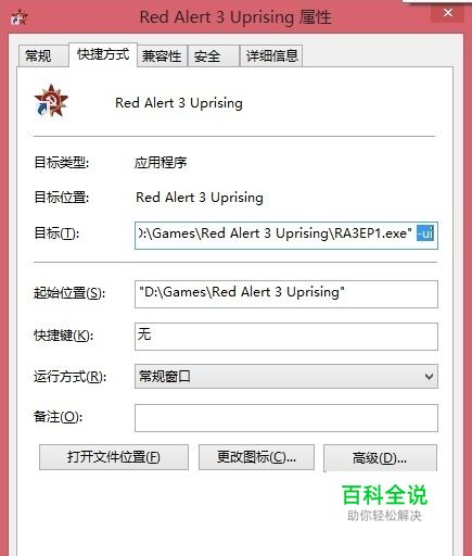 1.在红警3的快捷方式上右键属性,目标后面添加 -ui
