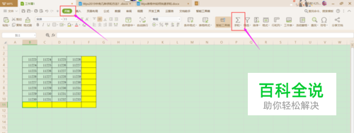 拖动鼠标,选定所有要求和的所有单元格,如下图所示: