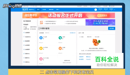 在淘宝页面中点击进入“卖家中心”,点击“发布宝贝”。