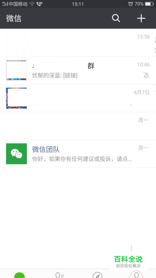 微信页面点击”钱包“。