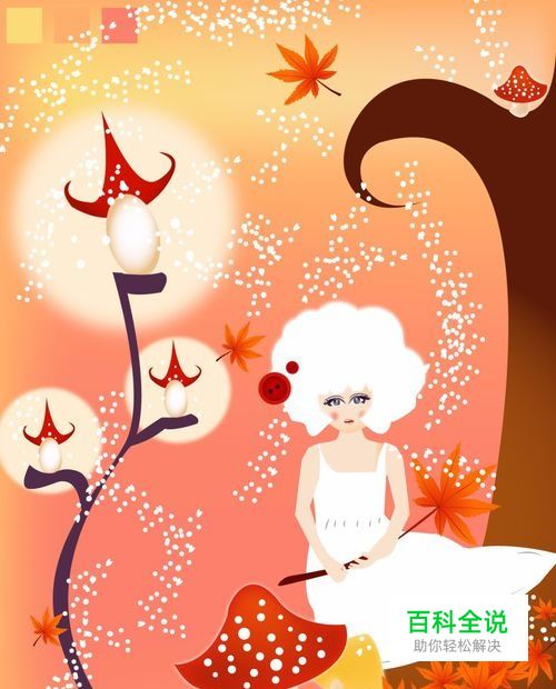 24.解锁枫叶,复制一个枫叶并拖大些,放在女孩手上。人物绘制就是多做几遍,感觉行了就可以。最终效果。