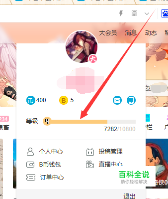 然后再将鼠标光标移到弹出的窗口上的会员等级进度条处