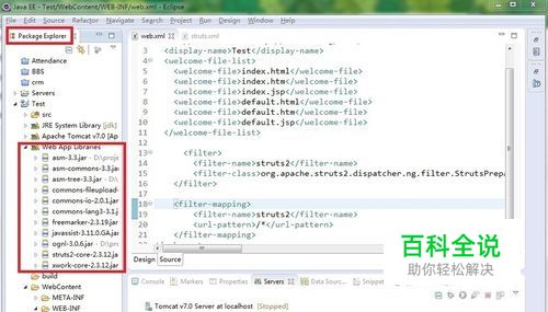 打开eclipse,建立web项目:Test,将struts2相关jar包导入到其中(请确保导入无误)。