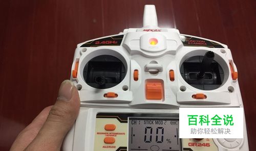 这个时候我们就要在遥控器的左边的操纵杆上下搜索信号,如果出现上面的指示灯和下面的显示屏出现%的时候就是连接上了。