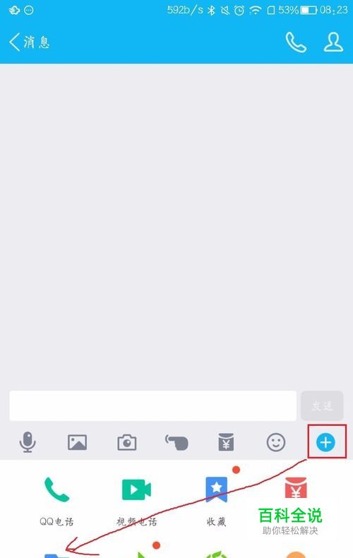 第一步,我们在手机QQ上找到朋友的聊天窗口,点击右下角“+”,然后选择“文件”