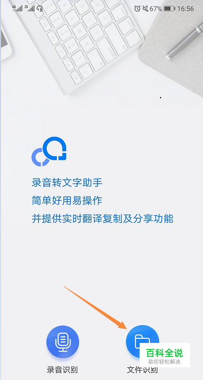 先打开录音转文字助手,然后会有两个选择,录音、文件识别;在这里选择文件识别。