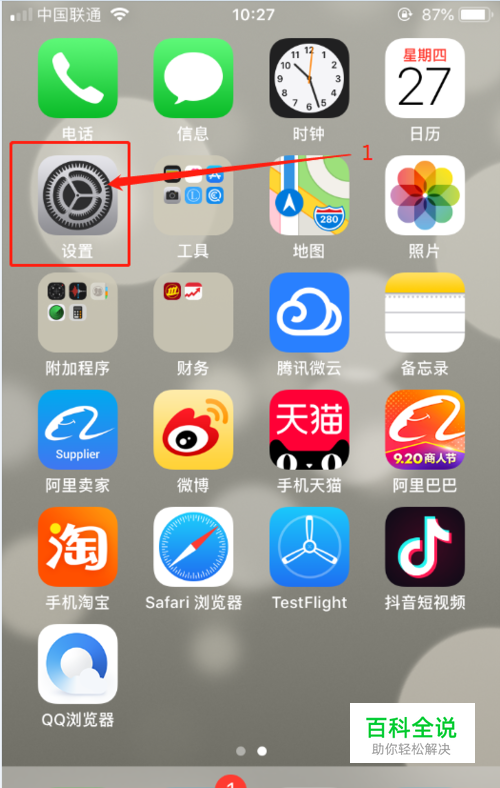 打开苹果手机、找到“设置”