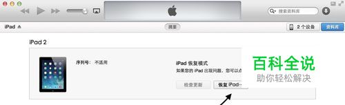如果你之前下载的那一个固件是错的话,你还可以选择下载另外一个版本。如果你实不知道应该如何区分属于自己的固件,建议让 iTunes 自动下载。下图是我的 iPad 在恢复模式下的截图,这时我可以直接点击 “恢复 iPad”按钮,如图所示