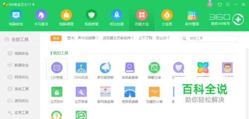 选择功能大全中的LSP修复。(如果没有需要在这个界面里面现下载。)