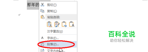 方法一: 通过鼠标选择好我们需要对齐的文字,然后右击鼠标,选择段落