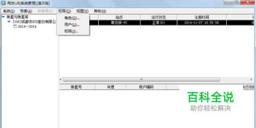 如图,若需增加操作员、设置操作员权限则在“权限”菜单中进行操作。(增加操作员的方法将在本系列第2篇经验中详细介绍,设置操作员权限的方法将在本系列第4篇经验中详细介绍)