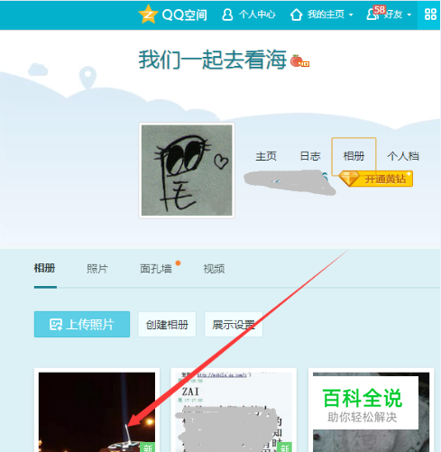 打开QQ空间后,单击相册链接。