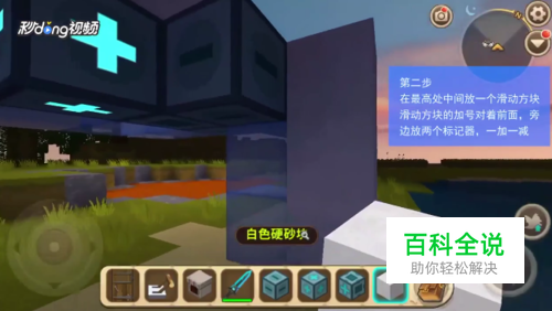 在最高处中间放一个滑动方块,滑动方块的加号对着前面,旁边放两个标记器,一加一减。