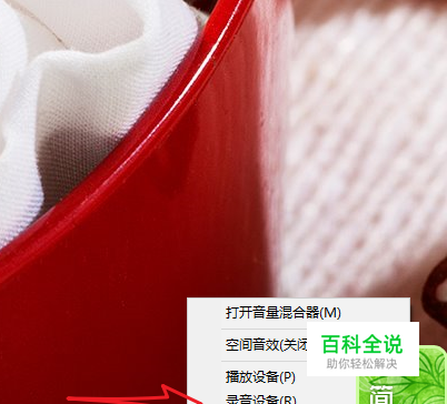 鼠标右击扬声器图标,会出现一个菜单,我们在这里那,选择录音设备。