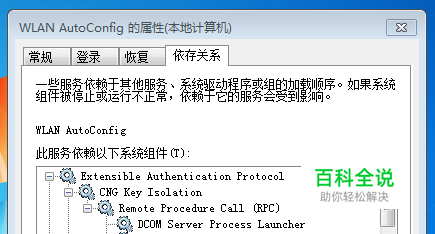 2. 开启宽带,(主服务:Network List Service,同理可找“依存关系”开启其他服务,还有其他如下:) 关键启动